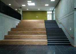 Schulerweiterung mit einem zweigeschossigen Baukörper mit Verwaltung, sowie einem viergeschossigen Baukörper mit Speisesaal und Küche